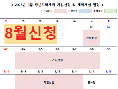 - 청년도약계좌는 매월 정해진 기간에 가입 신청을 받습니다. (2025.8월 1일~ 8월 14일)